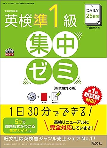 そこで、ドリル形式で一回の分量をコントロールできる参考書を活用することにしました。具体的に使用した参考書は、『英検準1級 集中ゼミ』です。